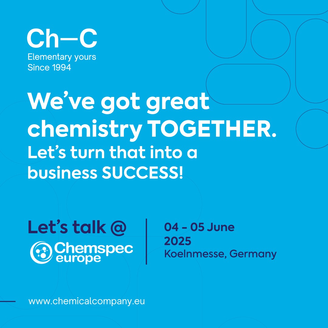 Ch-C România va fi prezentă pe 4–5 iunie la Chemspec Europe, cel mai important eveniment internațional dedicat industriei fine & speciality chemicals, desfășurat la Koelnmesse, Germania.
