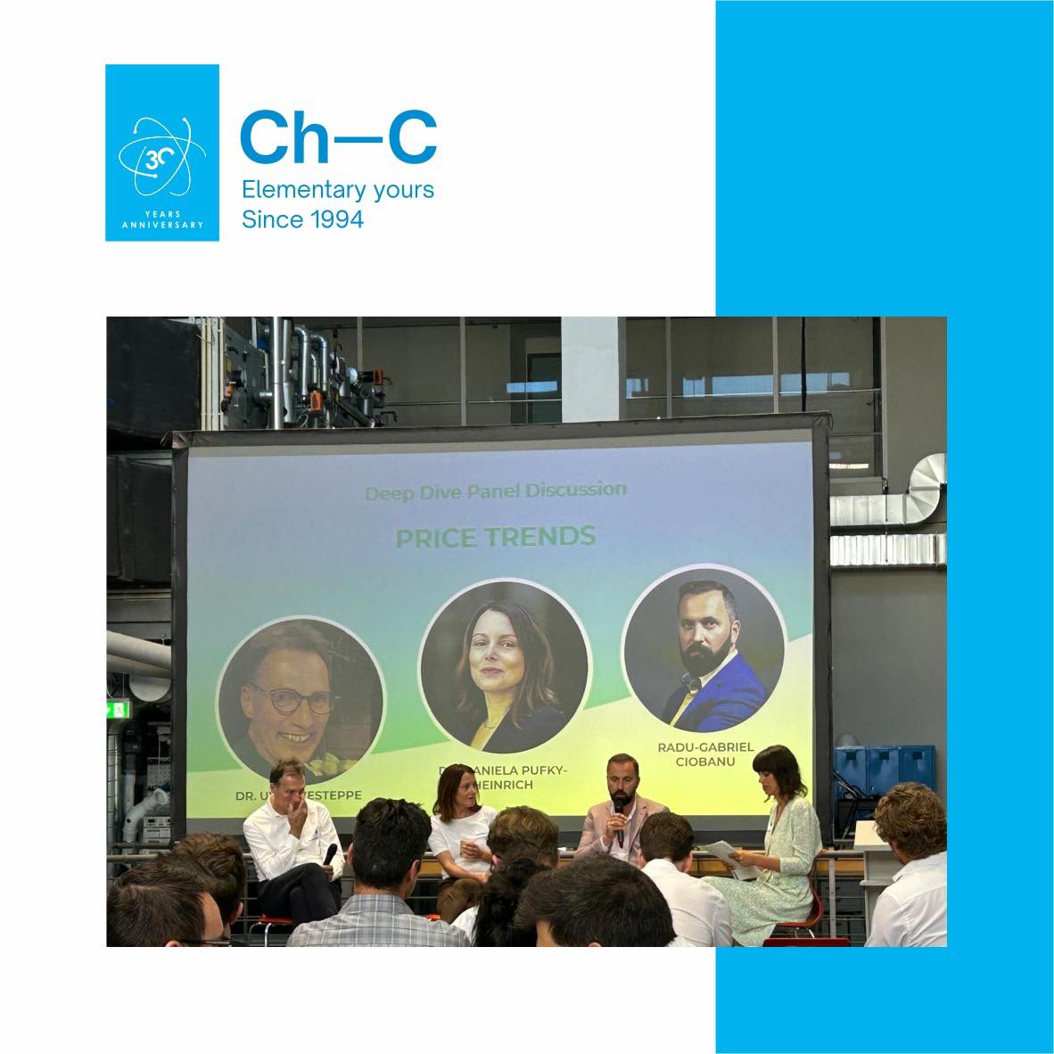 În cadrul evenimentului, Radu Ciobanu a prezentat viziunea noastră asupra cercetării și dezvoltării de sinteze personalizate și fine chemicals, subliniind importanța sustenabilității și inovației, precum și avantajele colaborării cu producătorii din Europa de Est. Alături de Radu Ciobanu, în cadrul sesiunilor de dezbateri cu start-up-urile, a fost prezent și Marian Zgavardici, Director de Producție, care a răspuns întrebărilor legate de soluțiile Ch-C România de scalare a producției de la stadiul de laborator la cel industrial.